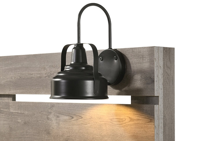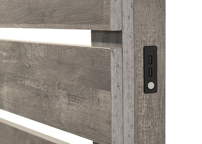 - Acabado gris madera flotante.