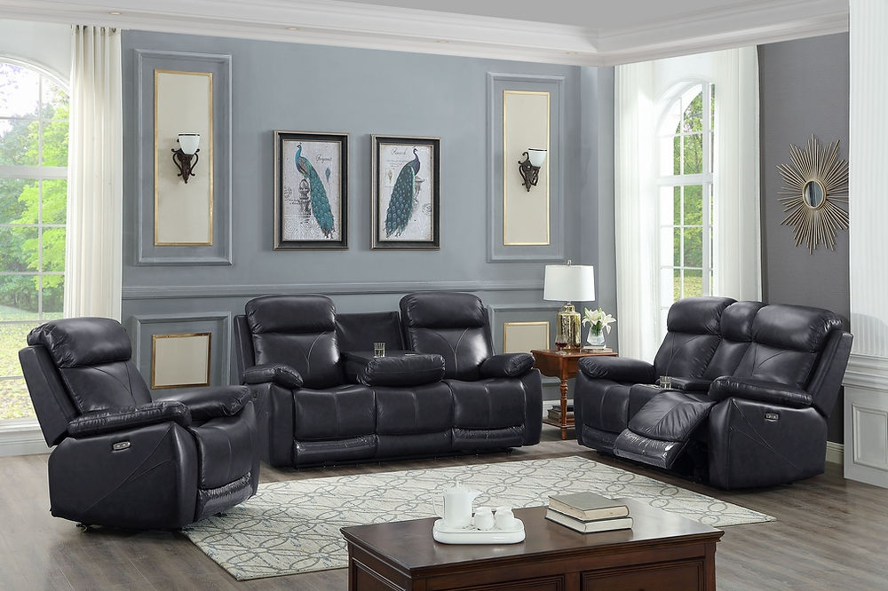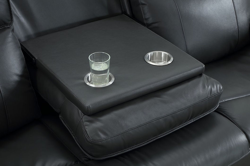 Sofá 2 sillones reclinables eléctricos, bandeja central con 2 portavasos, 2 USB