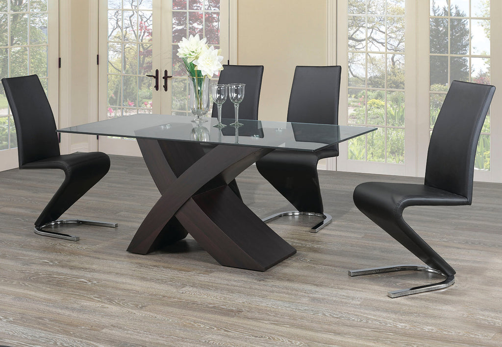 Mesa Mesa de vidrio templado de 10 mm con forma de 'X' y base espresso
