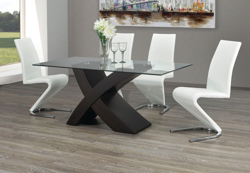 Mesa Mesa de vidrio templado de 10 mm con forma de 'X' y base espresso