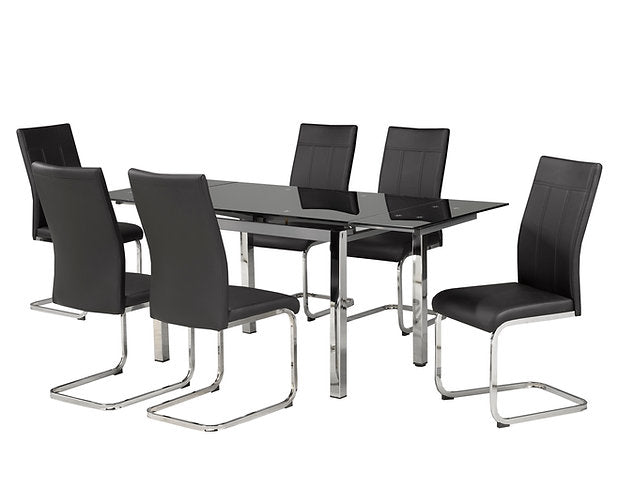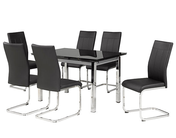 Sillas: PU negro suave, detalles de costuras y patas cromadas
