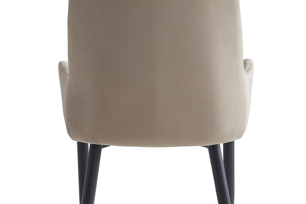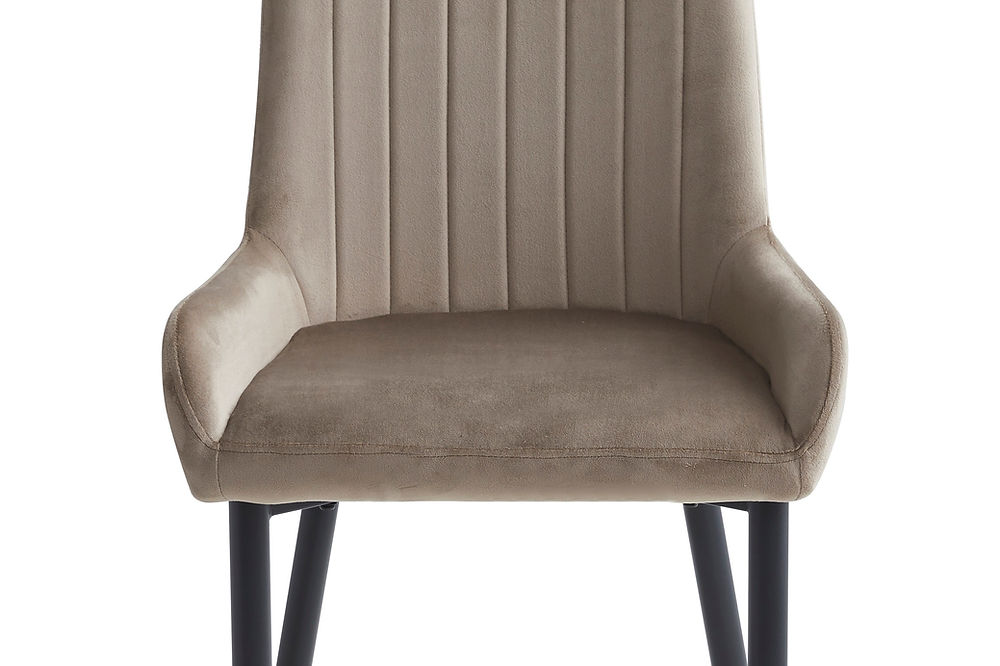 Chairs: Beige Velvet with Stitching Details, Black Steel Legs.