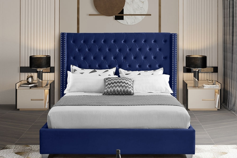 - Wing Bed with Deep Button Tufting