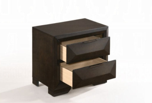 Offering everyting you could as fo in bedroom furniture, this rich espresso bedroom set is comfortabe, functional and sleey stylish. This group has plenty of storage options in the headboard and two pull-out drawers.